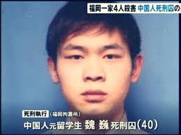 福岡一家4人殺害事件の3人の犯人のうち、日本で死刑が確定していた魏巍は、2019年12月26日に福岡拘置所で死刑が執行されました。当時の森雅子法務大臣が命令したもので、外国人死刑囚の執行は10年ぶりのことでした。