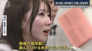 福山里帆さんは家族のためと思って誰にも言わずに父親からの性暴力に耐えていましたが、高校2年生の時に我慢の限界が来て、学校の養護の先生に相談しました。そして、児童相談所に保護されます。