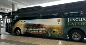 那覇空港や那覇市内、美ら海水族館、一部のオフィシャルホテルなどからジャングリア沖縄までを結ぶ予約制のシャトルバスです。