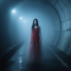 深夜、車のヘッドライトに照らし出された暗いトンネルの中、不意に赤い服を着た女が姿が現れると言われており、その姿は、車に向かって駆け寄ってくる、あるいは、ただじっとこちらを見つめているなど、様々なバリエーションで語られています。あまりの恐怖に運転を誤り、事故を起こしかけたという体験談も後を絶ちません。