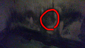 金山ダムの心霊写真で最も有名なのは、2014年にYahoo!知恵袋で公開されたもので、周辺のトンネルの中で前を走行していた車のリアガラスに顔のようなものが写り込んだとするものです。(上の画像)