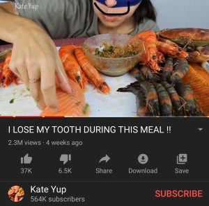 最も衝撃的だったのは、食事の最中に歯が抜け落ちる動画です。ある動画で、Kate Yupの歯がポロリと取れてしまうのですが、彼女は全く動じることなく、それを吐き出して何事もなかったかのように食事を続けたのです。