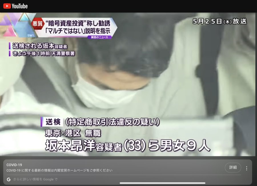 引用:暗号資産への投資を違法勧誘容疑、7億円超か 大学生含む9人を逮捕 [大阪府]:朝日新聞