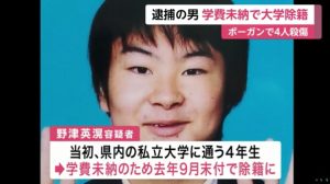 野津英滉は事件当時23歳で、事件を起こす約8ヶ月前の2019年9月末に大学を除籍になっており当時は無職でした。