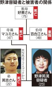 野津英滉の家族…事件被害者の母親、祖母、兄弟、伯母と生き別れた父親