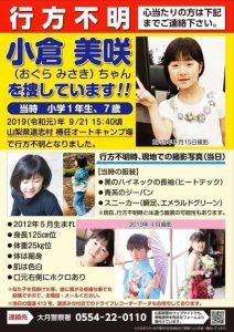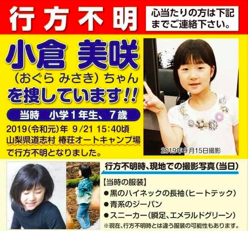 山梨キャンプ場女児行方不明事件の小倉美咲さんについて