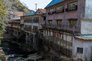 榊原温泉街の衰退を最も象徴していたのが、数々の廃墟の存在です。