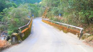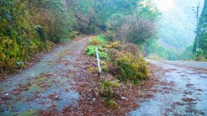 上の画像の左側の坂道へ進み、1.6kmほど進むと寒川集落跡へと到着します。徒歩ならば30分ほどで辿り着けます。