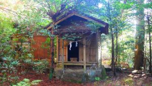 祭神は大山祇神、天穂日命、そして菅原道真公と伝えられています。廃村となった現在でも、神社の祠は比較的手入れがされている様子で、元住民や関係者によって今なお大切に扱われている事が窺えます。おそらく、寒川集落への道が現在も比較的手入れされている理由も、この寒川天神社を手入れするため人の往来があるためと推測されます。