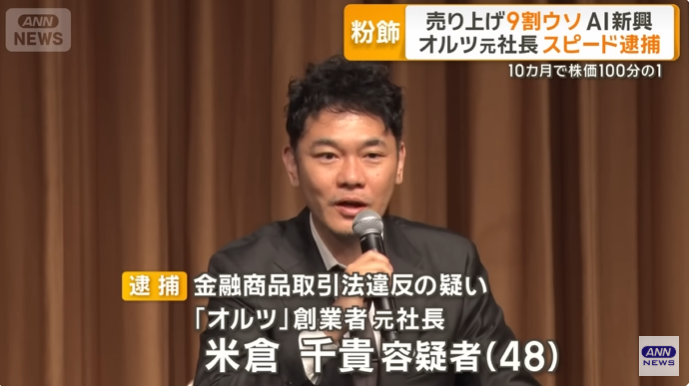 AI関連「株式会社オルツ」の創業者・米倉千貴容疑者が巨額の粉飾決算の疑いで逮捕されました。